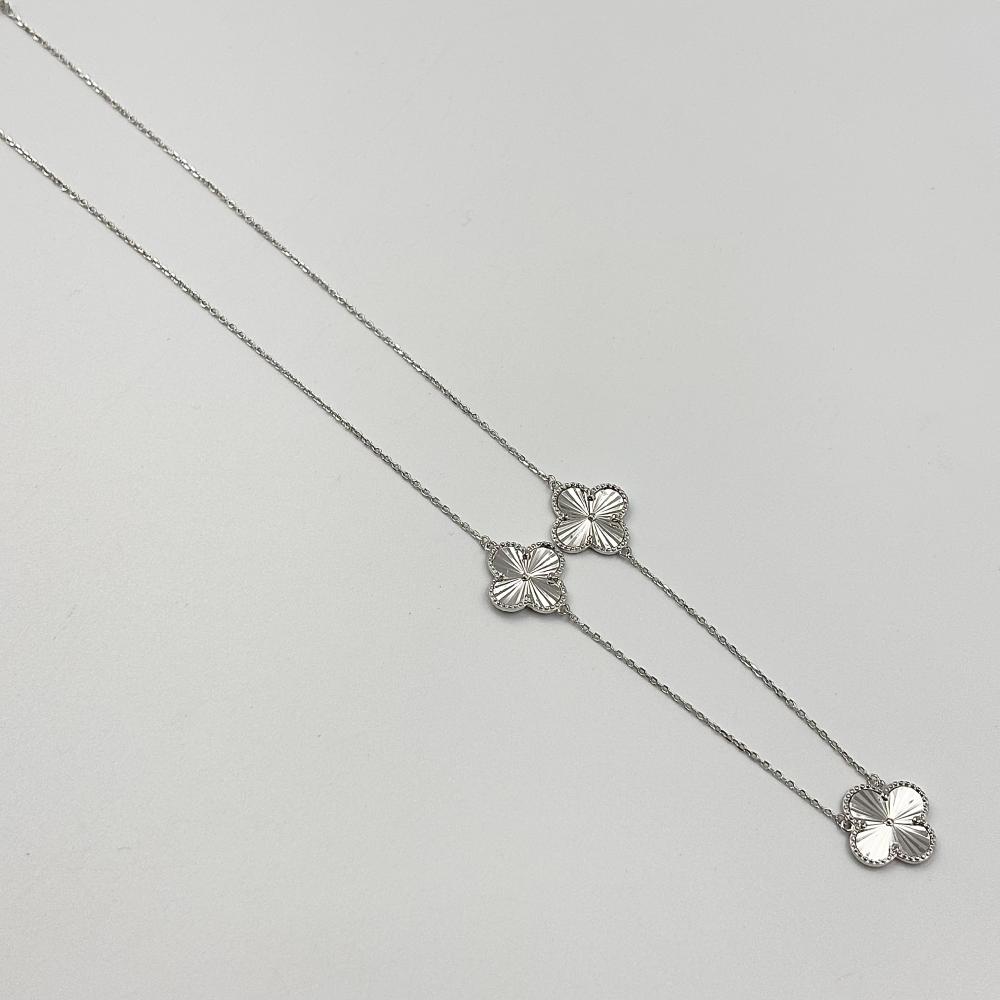 تألقي مع هذا العقد المصنوع من الفضة عيار 925 المستوحى من تصميم فان كليف ليجمع بين الأناقة الكلاسيكية والعصرية .