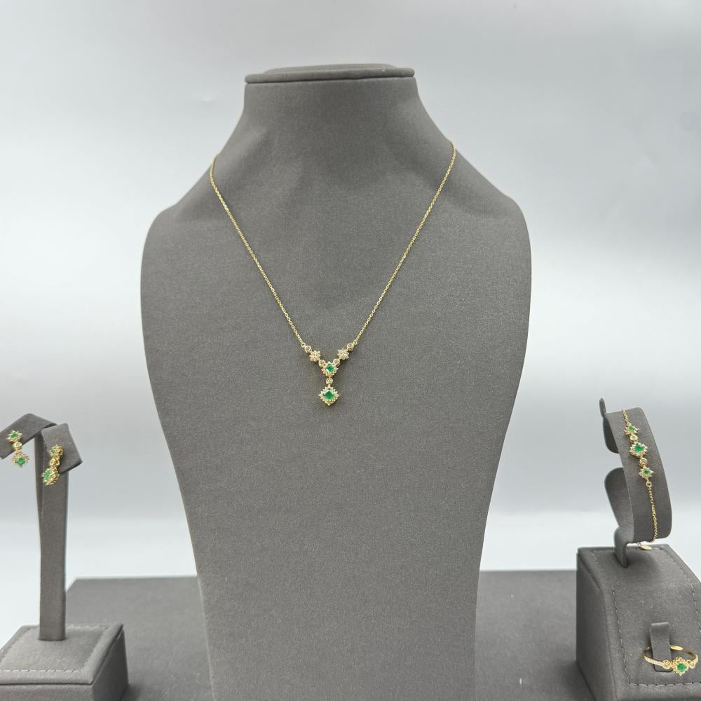 طقم فضة عيار 925 تصميم ألماس بكريستال أخضر هو تحفة فنية تجمع بين الفخامة والأناقة. يتميز هذا الطقم بتصميمه العصري والفريد، ما يجعله الخيار المثالي لإضفاء لمسة من التألق على إطلالاتك الخاصة في المناسبات الراقية. يضفي هذا الطقم لمسة من الفخامة التي تجمع بين الأناقة والترف، مما يجعله خيارًا مثاليًا لإبراز جمالك في كل مناسبة.