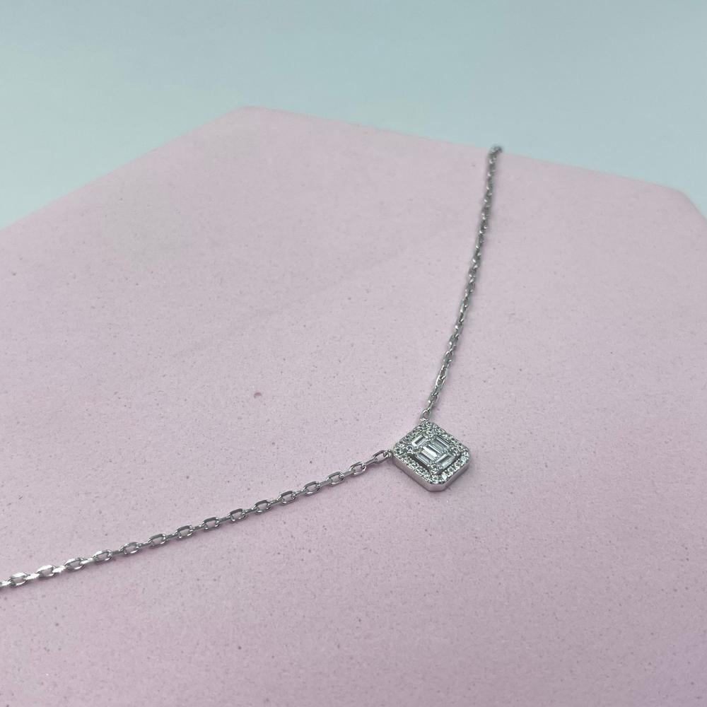 عقد فضة عيار 925 مميز مزين بتفاصيل دقيقة، يتميز بحجر سوليتير لامع يضفي لمسة من الفخامة والجاذبية. هذا العقد يتناسب مع مختلف الإطلالات، سواء كانت رسمية أو غير رسمية، ليضيف لمسة من الرقي والتميز.