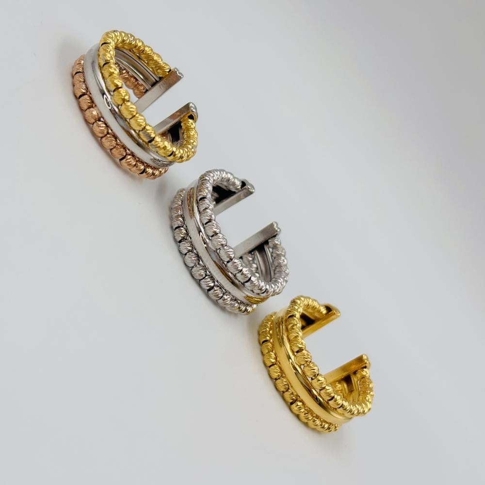 مقاس الخاتم : ١٤ ( ملون ) ، ١٦ ( فضي ) ، ١٥ ( ذهبي - فضي ) ، ١٨ ( ذهبي )