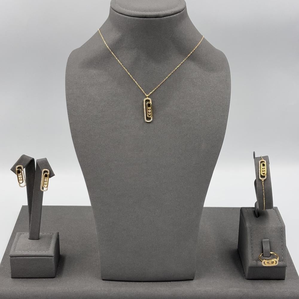 طقم بتصميم ناعم ومميز مستوحى من لمسة ميسيكا الفريدة، بلون ذهبي أنيق يضيف لمسة فخامة وعصرية لإطلالتك اليومية والمميزة.