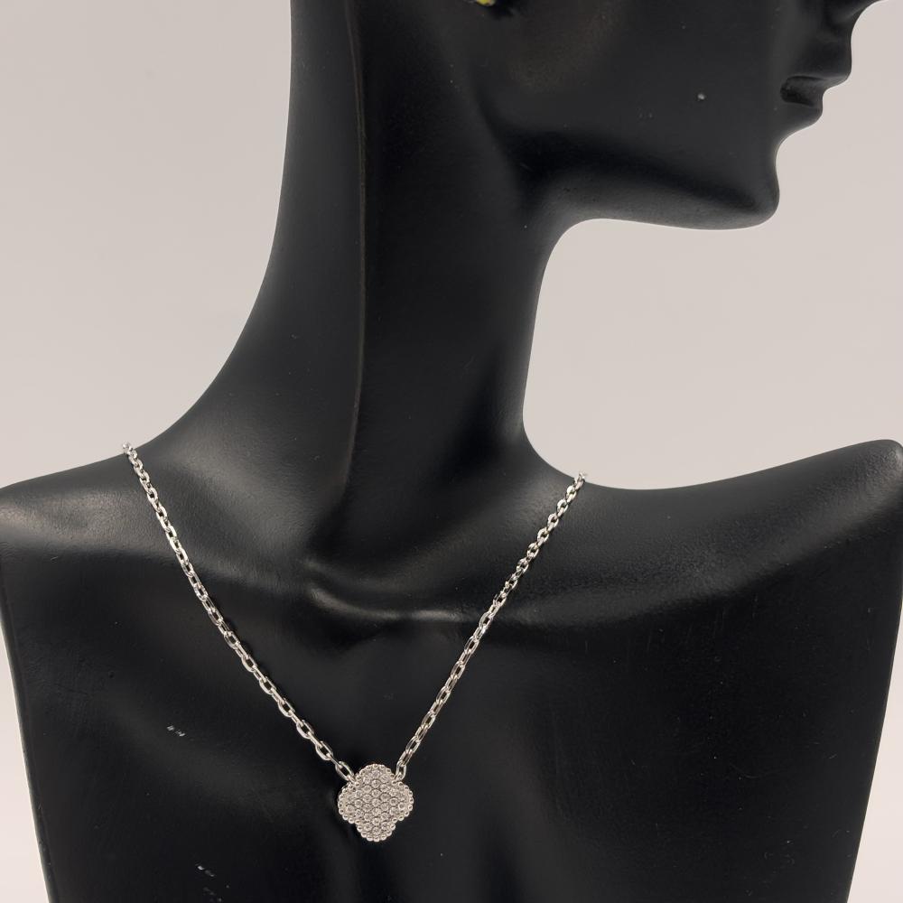 عقد فضة عيار 925 بتصميم مستوحى من فان كليف، مزين بفصوص لامعة تضفي بريقًا ساحرًا. يتميز بتفاصيل دقيقة وأنيقة تعكس الفخامة والرقي، مما يجعله خيارًا مثاليًا لإضفاء لمسة من التألق على إطلالتك سواء في المناسبات الخاصة أو كجزء من إطلالة يومية أنيقة.