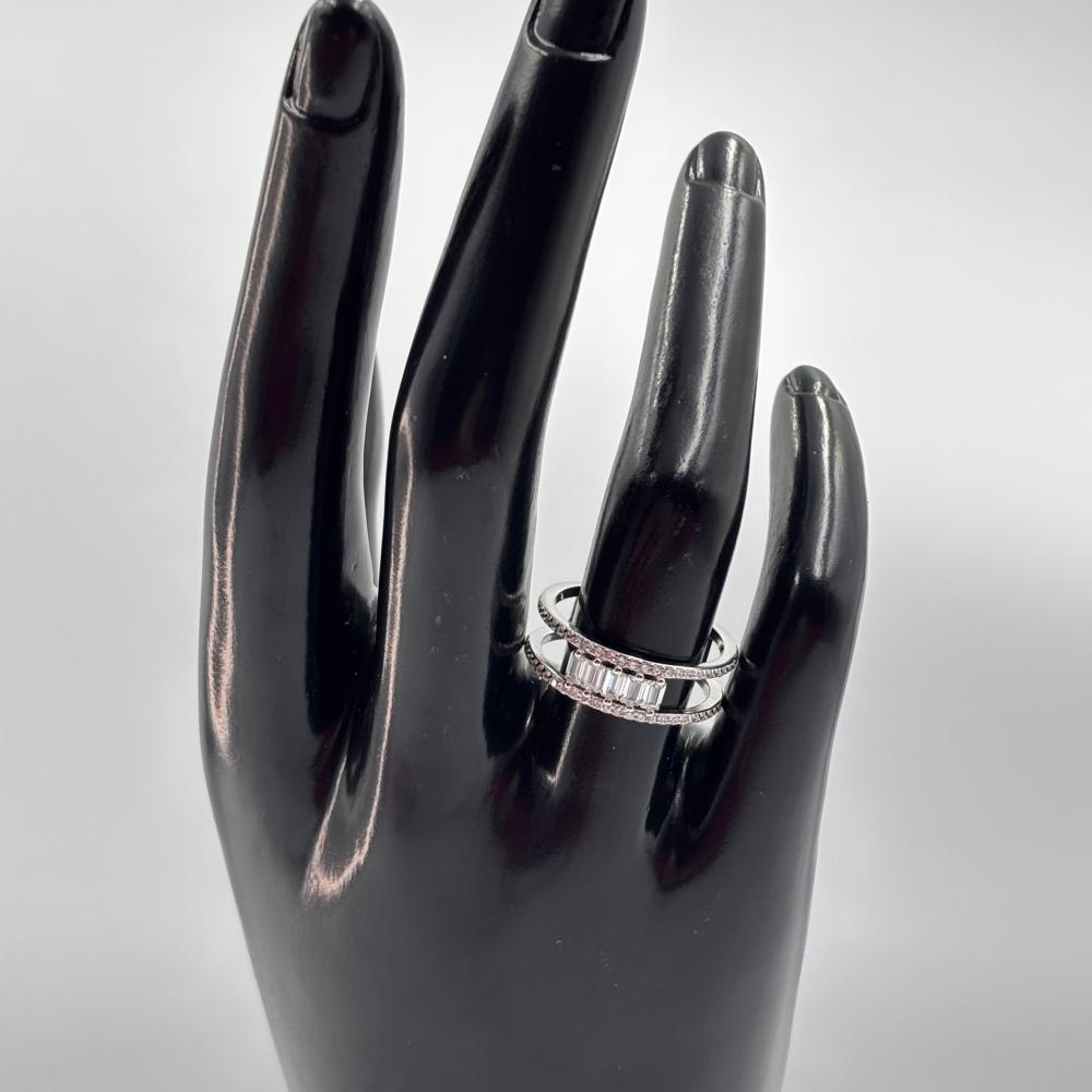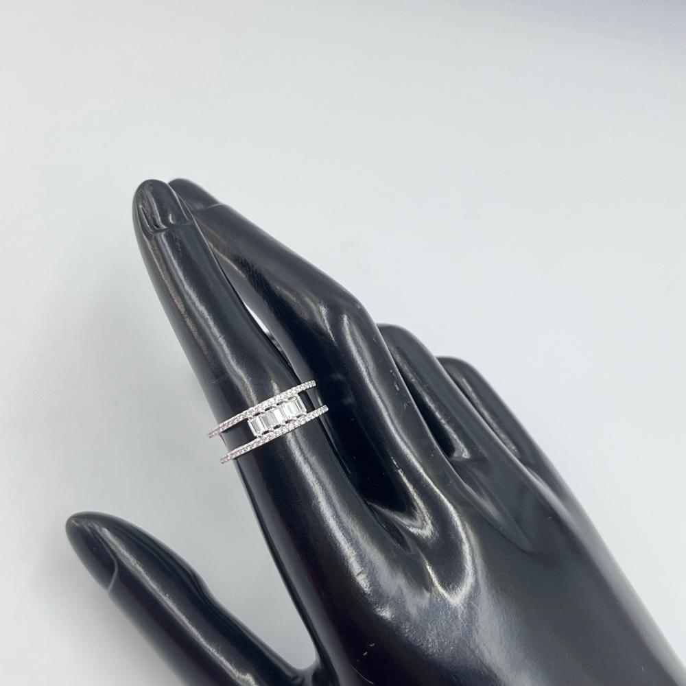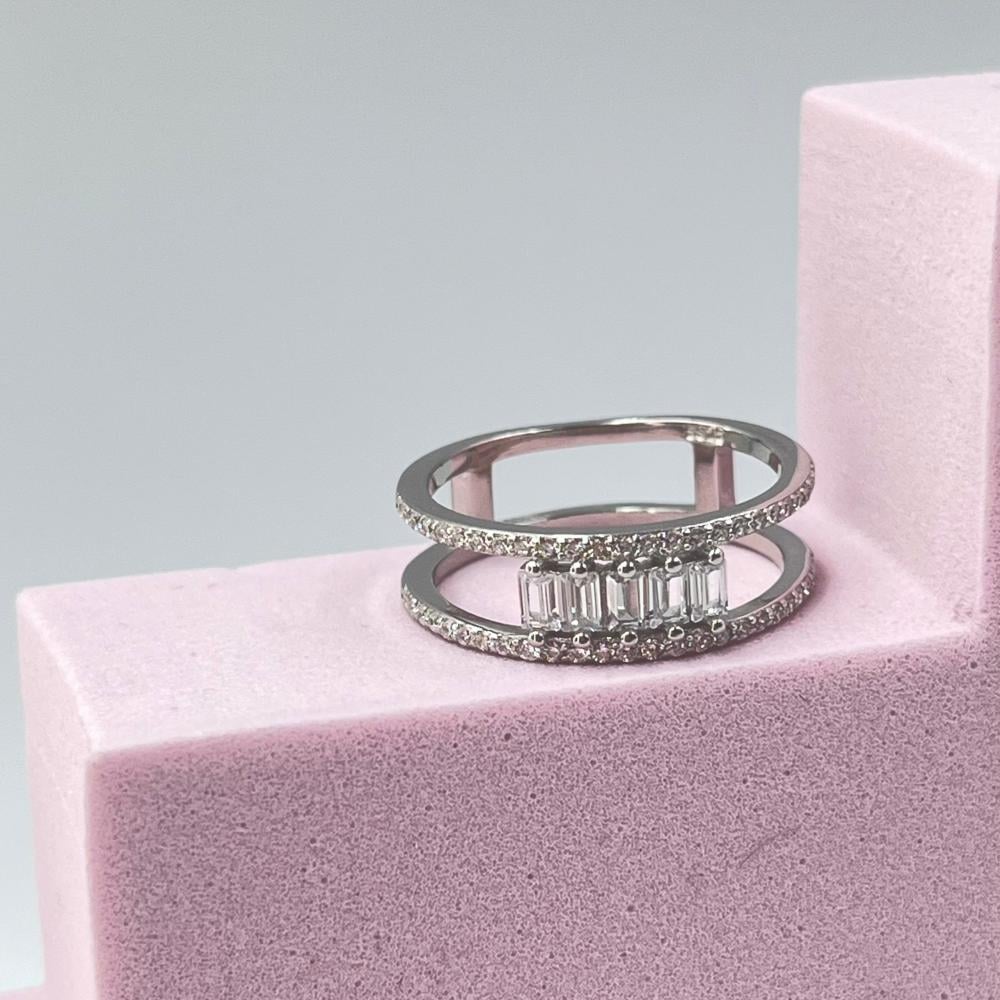 خاتم فضة ذو تصميم فاخر يتكون من دورين من الفصوص المتراصة بشكل أنيق. في الوسط بين الدورين يبرز حجر سوليتير مستطيل الشكل، ما يضفي على الخاتم لمسة من الفخامة والجاذبية. الفصوص المحيطة بحجر السوليتير تضيف لمعانًا وتبرز جمال الحجر في المنتصف، مما يجعل الخاتم مثاليًا للمناسبات الخاصة أو لإضافة لمسة من التميز لإطلالتك اليومية.