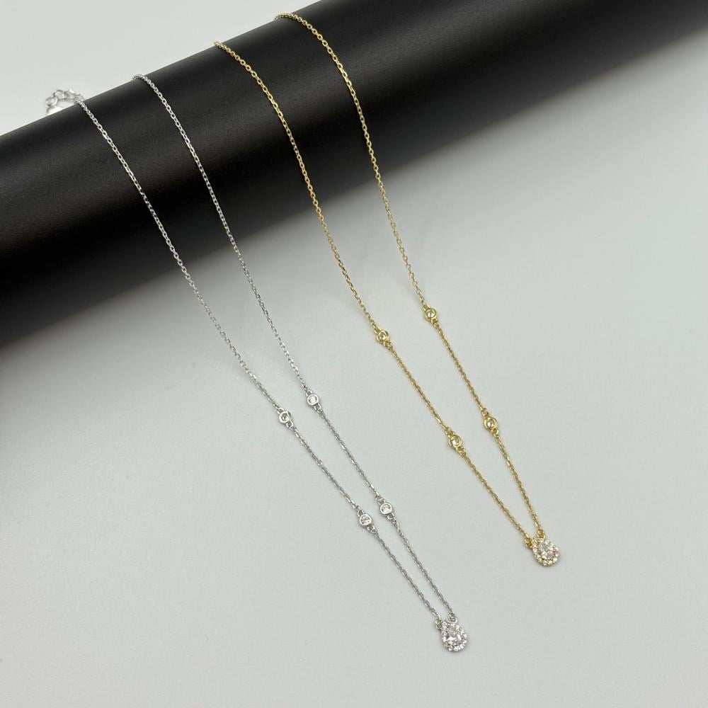 هذا العقد بتصميمه الناعم والبسيط والمفعم بالجمال مصنوع بدقة من أجود أنواع الفضة عيار 925 ليمنحك مظهراً متألقاً .