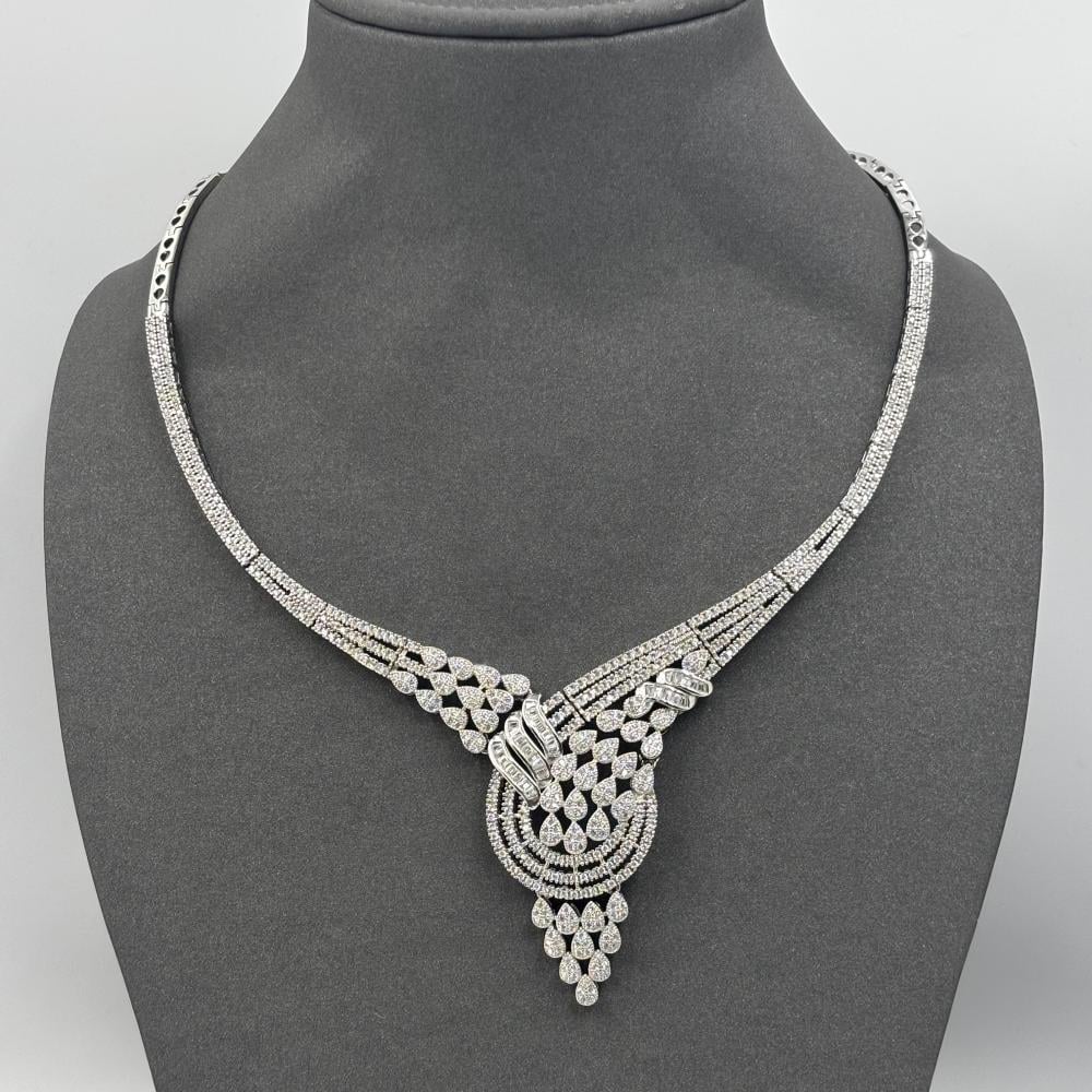 طقم فضة فخم بتصميم يشبه تصاميم الألماس ، يجمع بين الرقي والأناقة ليكمل إطلالتك في المناسبات الكبرى وحفلات الزفاف. يتميز بتفاصيله الدقيقة وتصميمه العصري الذي يبرز الجمال الطبيعي للفضة ، مما يجعله الخيار المثالي للعروس أو أي مناسبة تتطلب لمسة من التميز والفخامة.